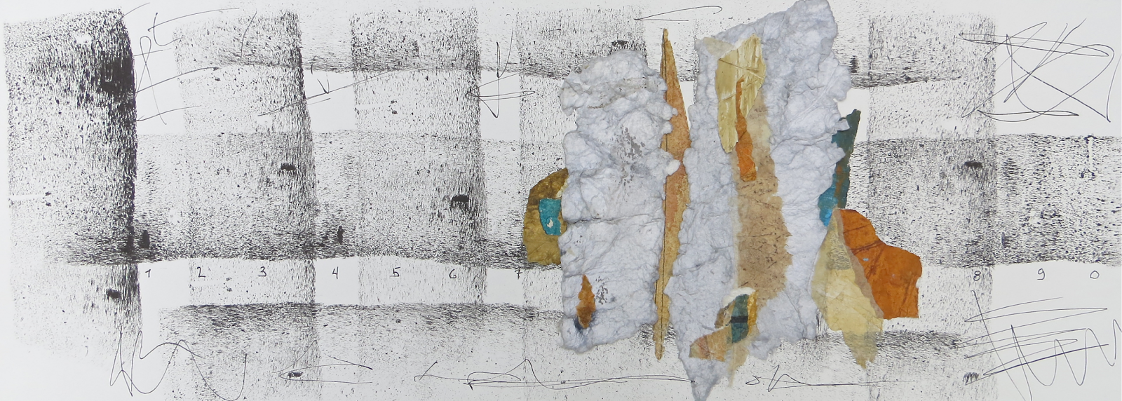 Techniques mixtes sur papier: empreintes, collages, pâte de papier, encre